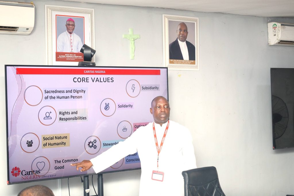 The visit concluded with an all-staff meeting focused on staff development and strengthening organizational systems in the region. During the session, Fr. Audu delivered a presentation on Caritas Nigeria’s core values and encouraged staff to embody these principles in both their professional responsibilities and personal conduct. Staff members also had the opportunity to ask questions and seek clarifications, while the Executive Secretary provided guidance and responded to the concerns raised.